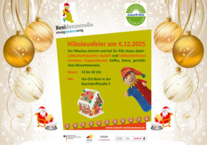 - 06.12.2025 von 14.00 – 18.00 Uhr – Der Nikolaus kommt und hat für jedes Kind etwas dabei – Weihnachtsbasteln, Puppentheater, Kaffee, Kekse, gemütliches Beisammensein. Ort: Infopunkt in der Raschdorffstraße 5 in 13409 Berlin